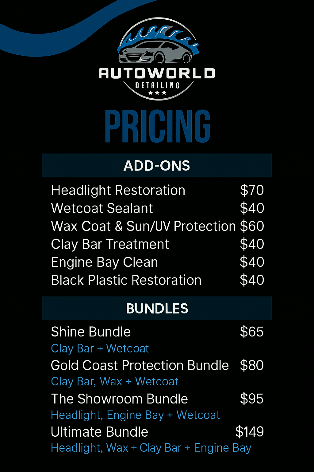 At AutoWorld Detailing, we offer a range of premium additional services designed to enhance your vehicle’s appearance, protection, and longevity.
