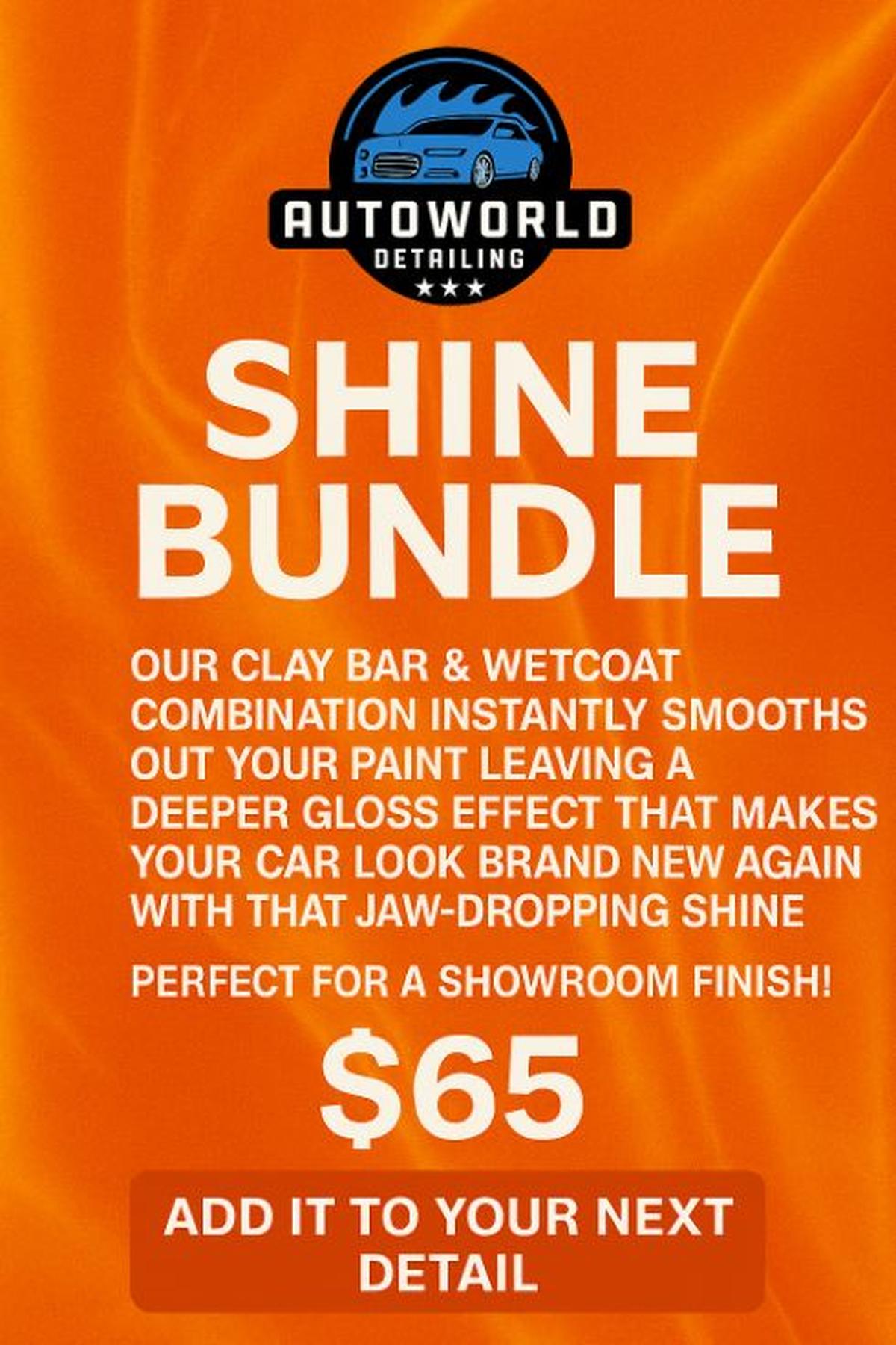 At AutoWorld Detailing, our clay bar treatment remove's embedded dirt, tar, and contaminants from your vehicle’s paint. This safe and effective treatment restores a smooth, clean surface, enhances shine, and prepares your car for wax or sealant, leaving your vehicle looking polished, protected, and like-new.
